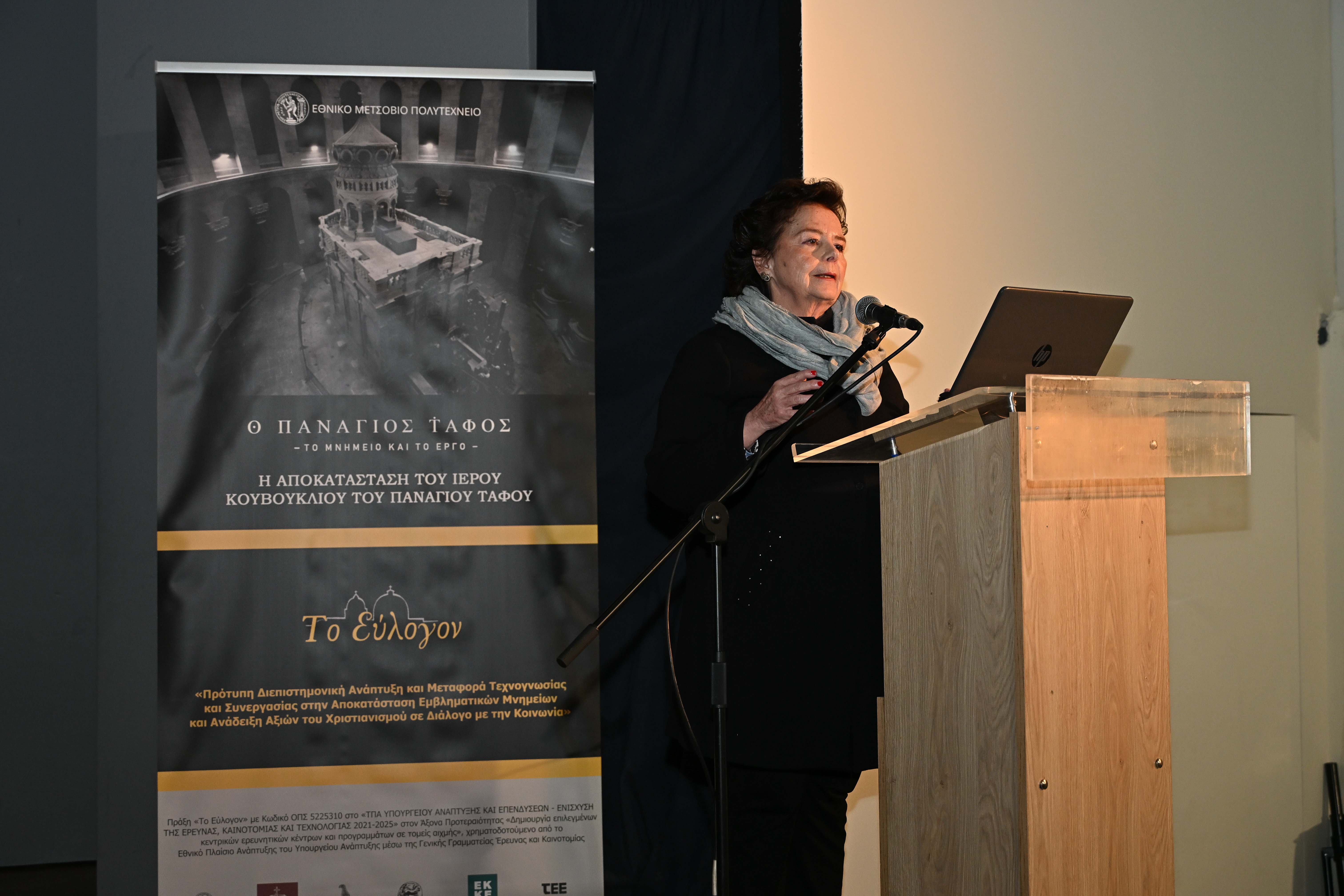 Ξεναγός η επικεφαλής της Διεπιστημονικής Ομάδας του ΕΜΠ του έργου, ομότιμη καθηγήτρια του ΕΜΠ και Α’ Αντιπρόεδρος ΔΕ ΤΕΕ Αντωνία Μοροπούλου η οποία μετέφερε τους συμμετέχοντες στα όσα η ίδια και η ομάδα αντιμετώπισαν κατά τη διάρκεια των εργασιών που αποκατέστησαν το μνημείο που δημιουργήθηκε πριν από 1700 χρόνια από τον Μέγα Κωνσταντίνο.