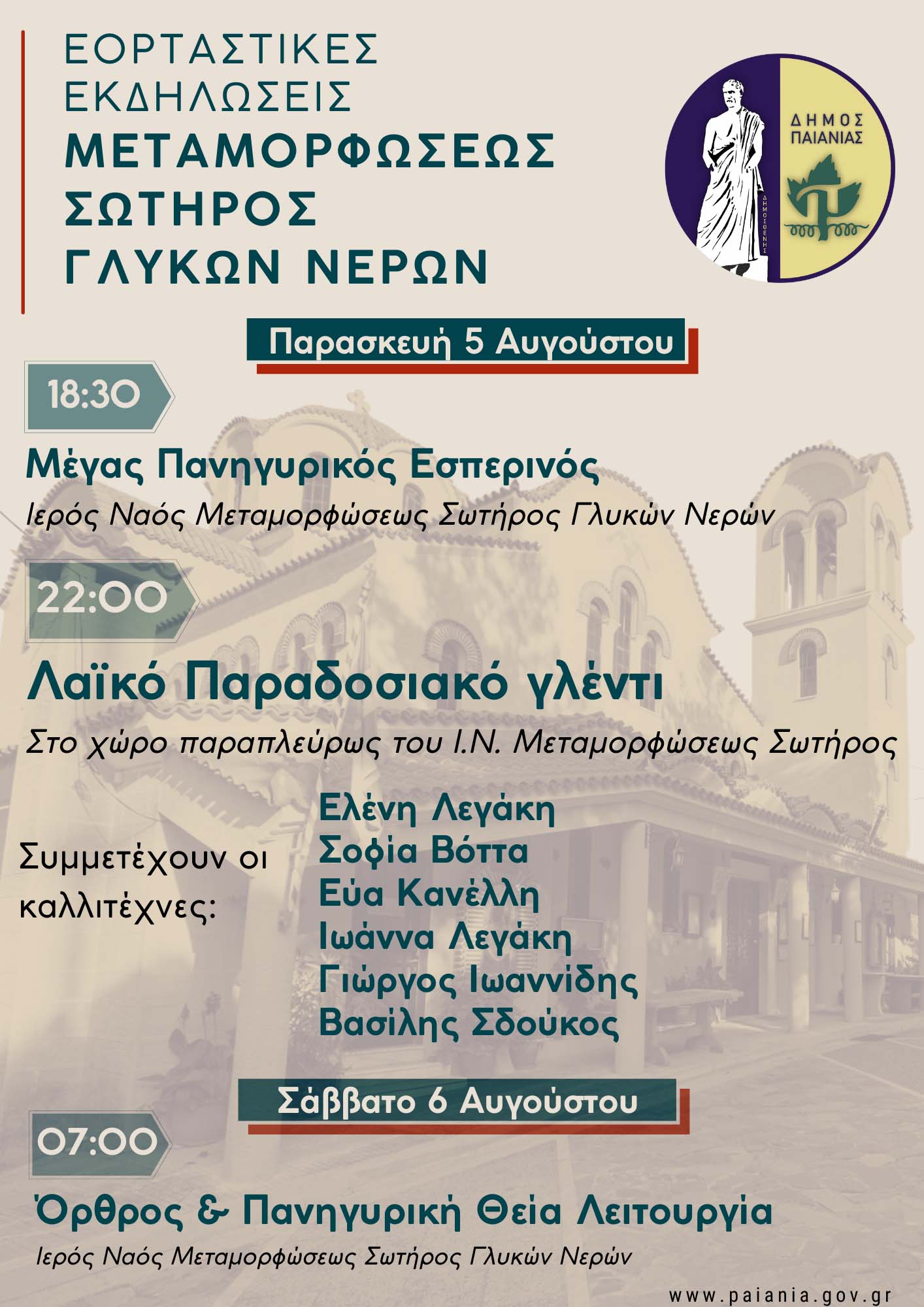 Πρόγραμμα εκδηλώσεων για τον εορτασμό της Μεταμορφώσεως Σωτήρος