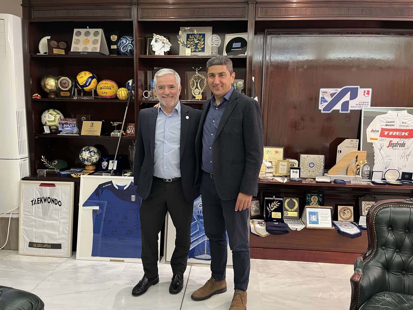 Συνάντηση εργασίας με τον Υφυπουργό Αθλητισμού, Λευτέρη Αυγενάκη, είχε ο Δήμαρχος Παιανίας, Ισίδωρος Μάδης, με αντικείμενο την αποκατάσταση των Ολυμπιακών Ακινήτων αλλά και του Δημοτικού Αθλητικού Κέντρου (ΔΑΚ) Παιανίας.