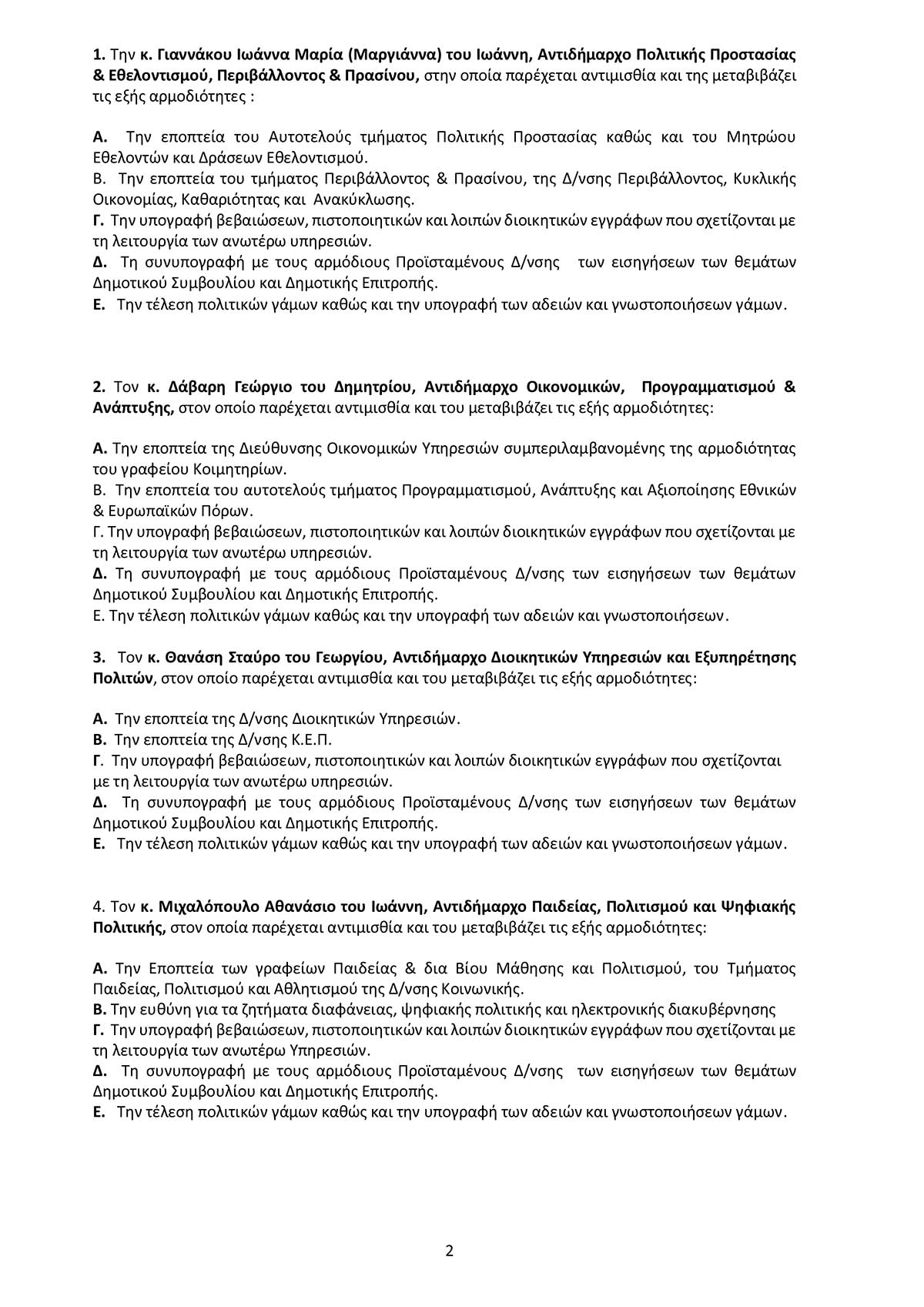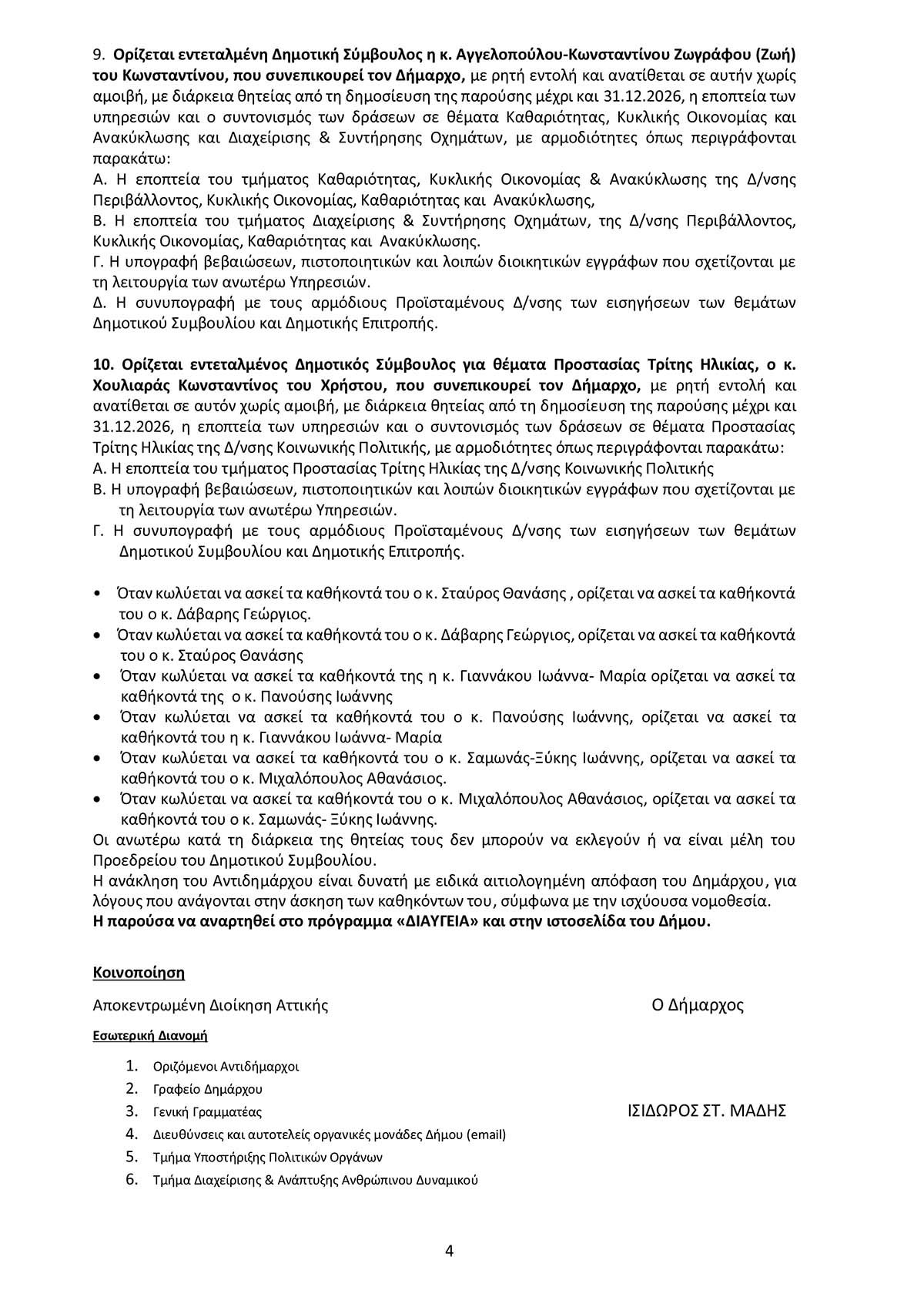 Απόφαση Δημάρχου Παιανίας για τον ορισμό αντιδημάρχων και εντεταλμένων συμβούλων