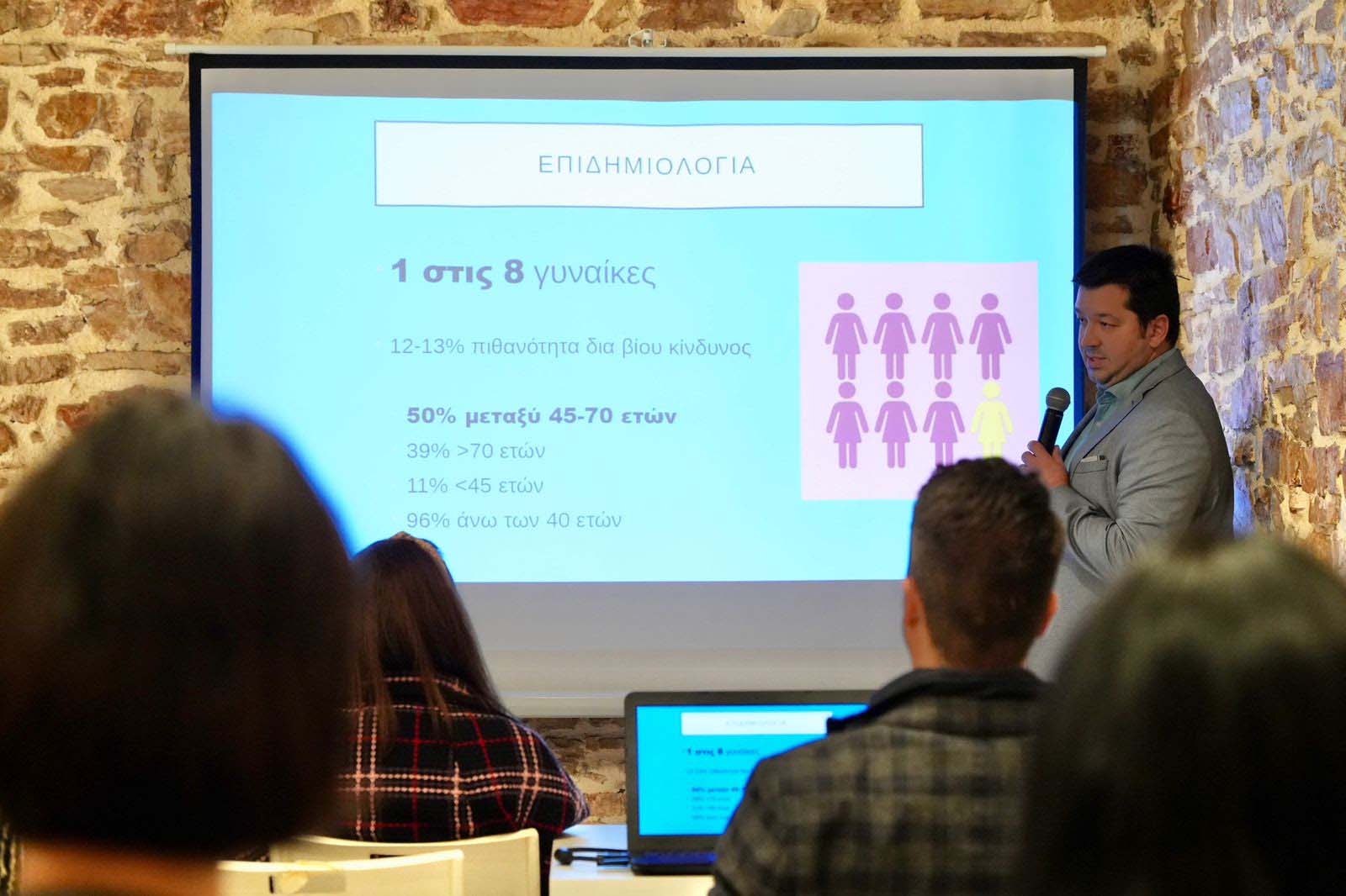 Ο Ευάγγελος Σολάκης, Γενικός Χειρουργός και εξειδικευμένος Χειρουργός Μαστού σχολίασε πως «η πολύ σημαντική αυτή ενημερωτική εκδήλωση αποτέλεσε μια ευκαιρία να ενημερώσουμε για την σημασία της πρόληψης και της έγκαιρης διάγνωσης». Στο πρώτο κομμάτι που αφορά την πρόληψη και τον προσυμπτωματικό έλεγχο ο γιατρός παρουσίασε τα στοιχεία που δείχνουν τη συχνότητα και τη σοβαρότητα της νόσου και εξήγησε τη σπουδαιότητα της έγκαιρης διάγνωσης για την άριστη πρόγνωση! Αναφέρθηκε στους επιβαρυντικούς παράγοντες και ανέλυσε τι προτείνεται να γίνεται στο κομμάτι της πρόληψης (απεικονιστικά, βιοψίες, γονιδιακό έλεγχο και μαστολογική εκτίμηση από εξειδικευμένους χειρουργούς μαστού) για να επιτυγχάνεται το βέλτιστο αποτέλεσμα! Έγινε σαφές ότι παρόλη την βελτίωση των θεραπειών και των χειρουργικών τεχνικών, η ενημέρωση και η πρόληψη παραμένουν αδιαμφισβήτητα ο ισχυρότερος σύμμαχος στην προσπάθεια να επιτευχθεί το καλύτερο δυνατό αποτέλεσμα για κάθε γυναίκα!