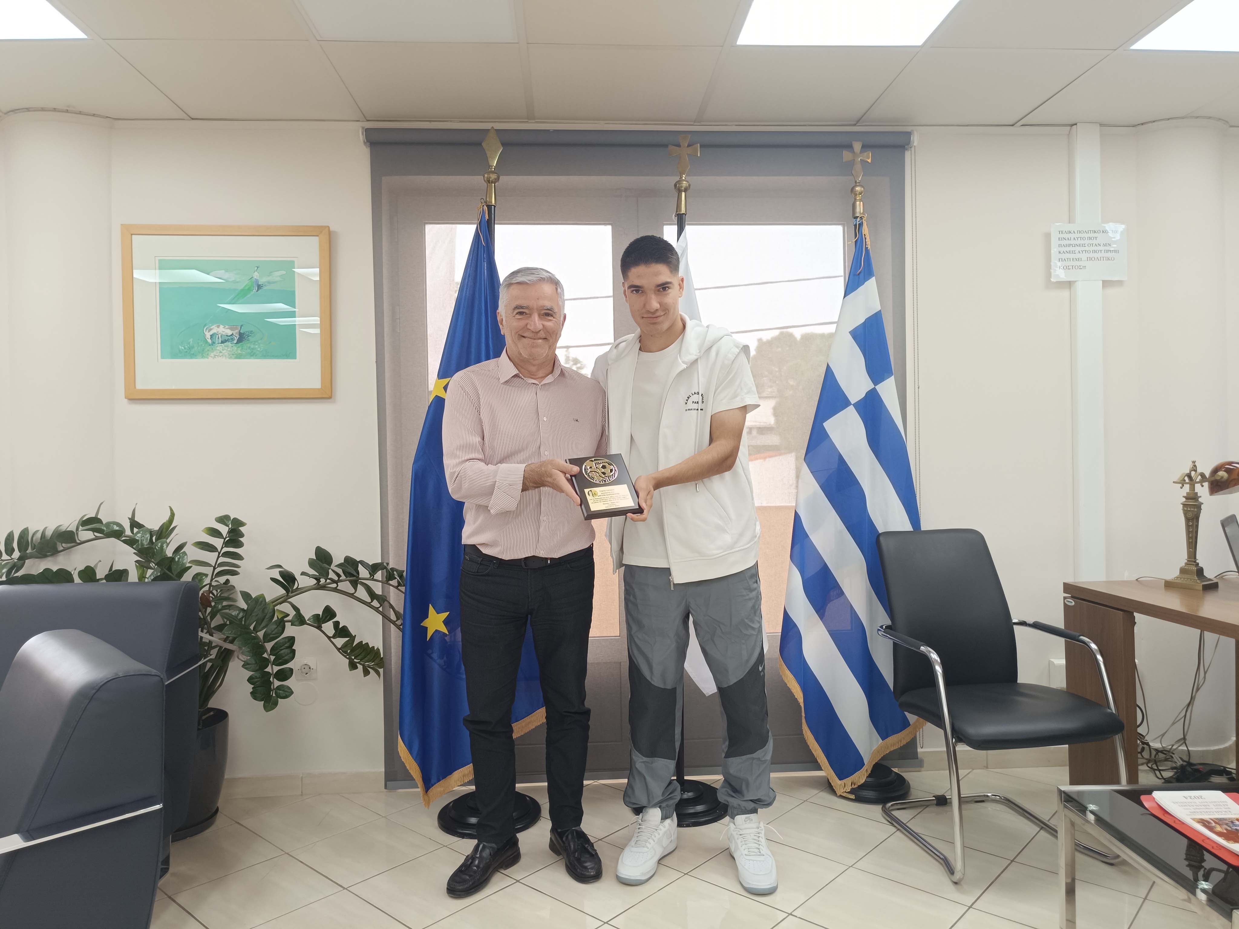 Τον πρωταθλητή Ευρώπης με την ομάδα του Ολυμπιακού Κ19 Αργύρη Λιατσικούρα βράβευσε ο Δήμαρχος Παιανίας Ισίδωρος Μάδης.